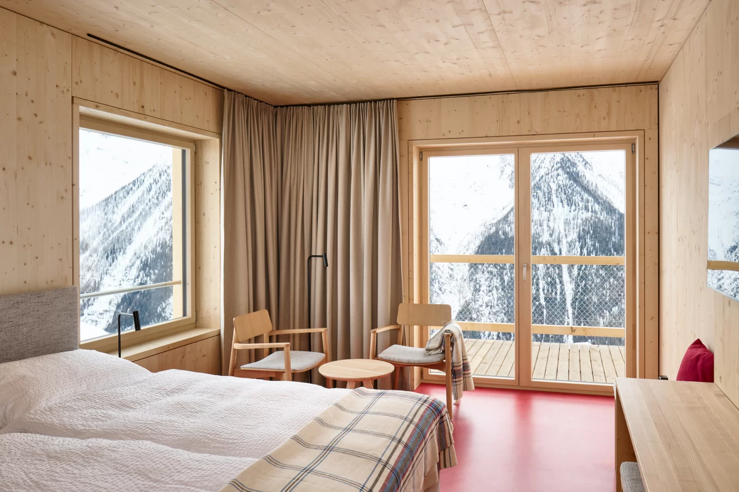 Wooden walls, warm fabrics, wide window fronts: Alpine minimalism to make you feel at home.